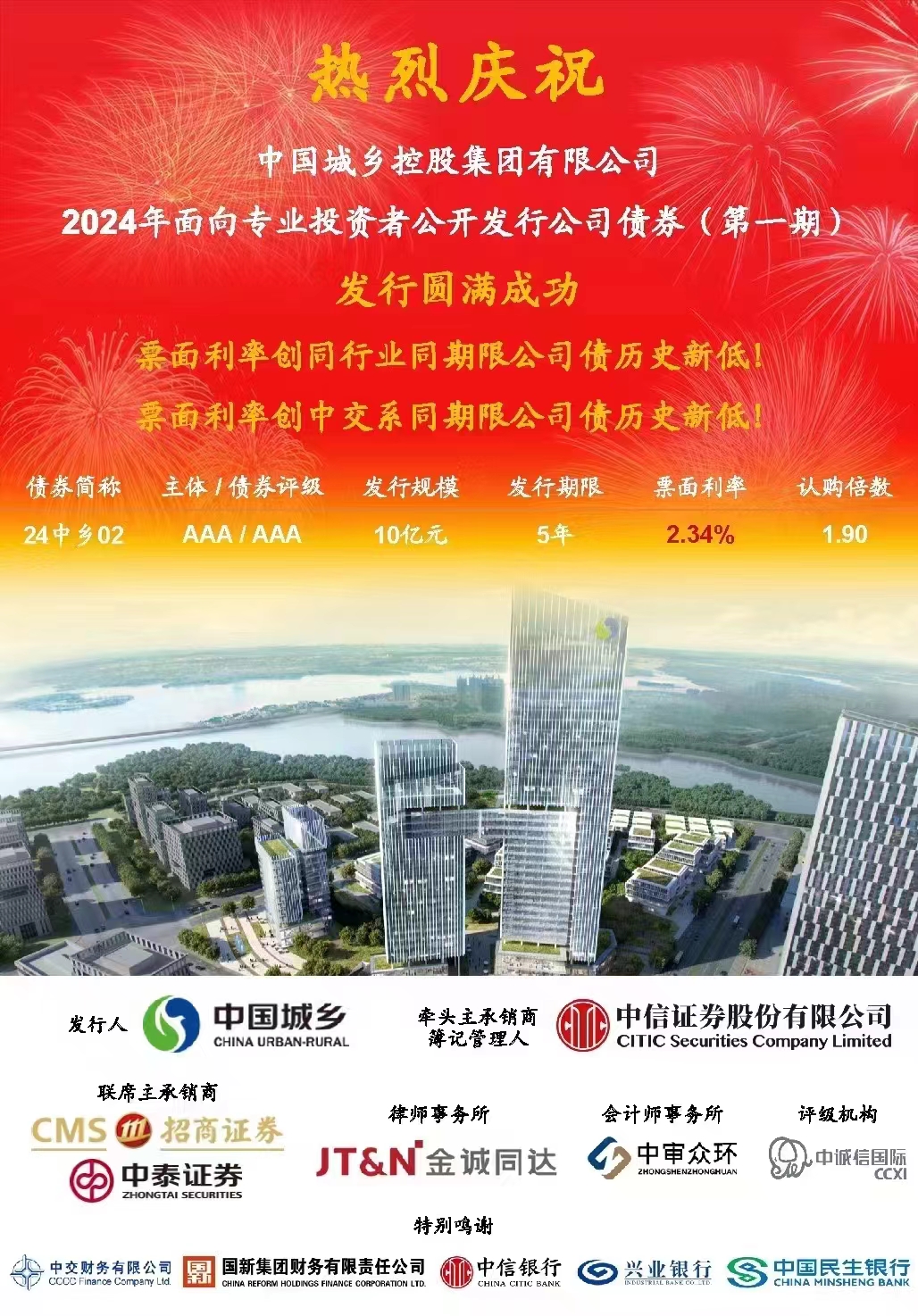 7月17日,财务公司作为财务顾问助力中国城乡在交易所市场首次发行公司债,发行期限5年,合计募集规模10亿元,发行利率2.34%,票面利率创同行业、中交系同期限公司债历史新低。本次发行,公司首次与国有资本运营公司实现联动,协调国新财务认购1亿元额度,有力支持了集团内战新产业投资孵化运营平台。